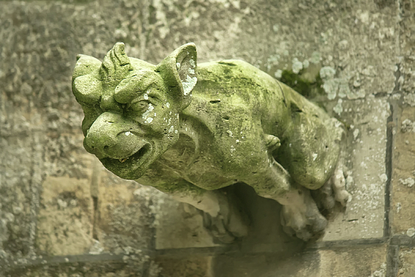This cute, little guy was hanging off the side of the Cathedral in Bayeux, working hard at fending off the evil forces :D Bayeux, Normandy, France